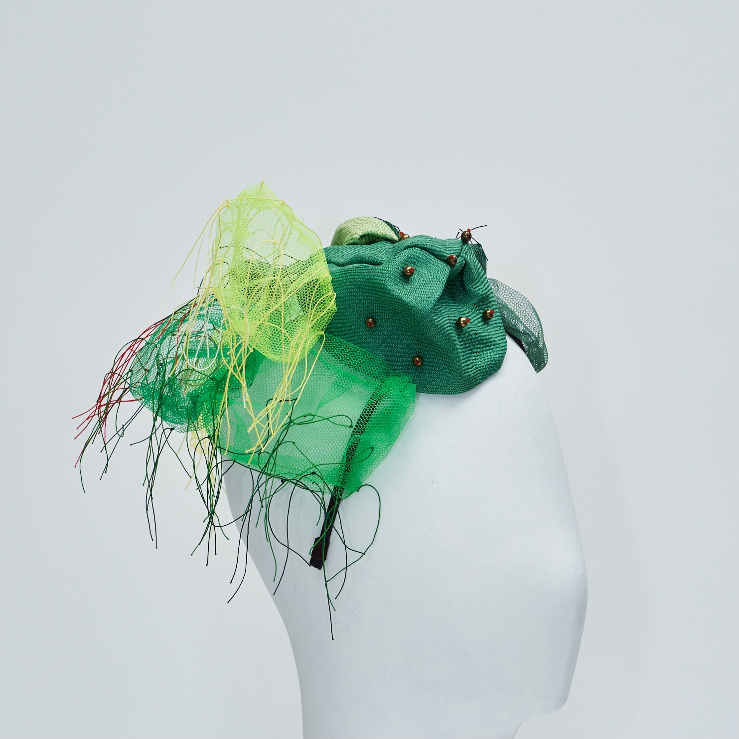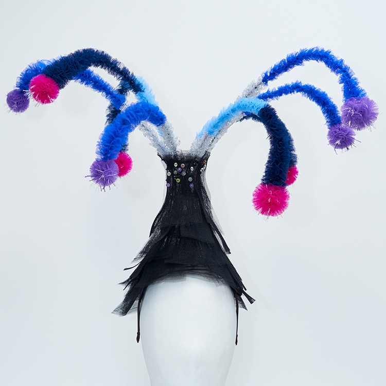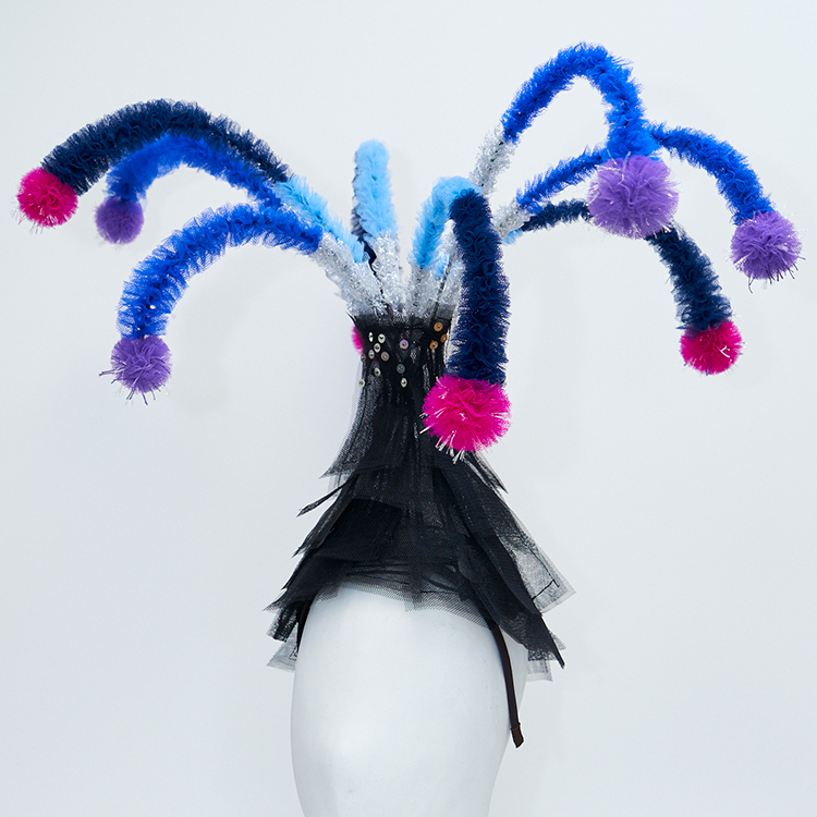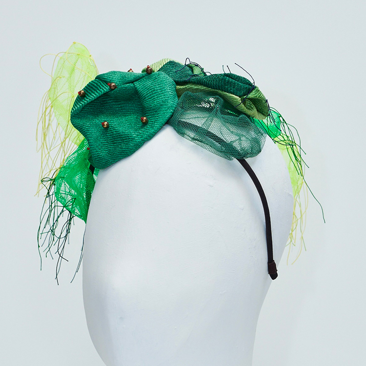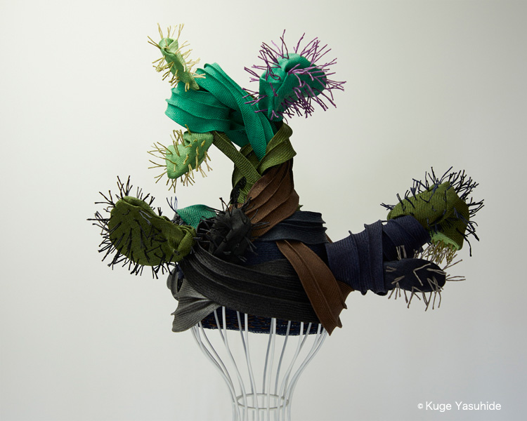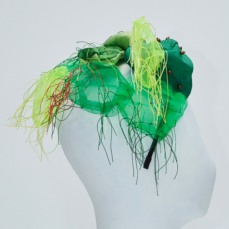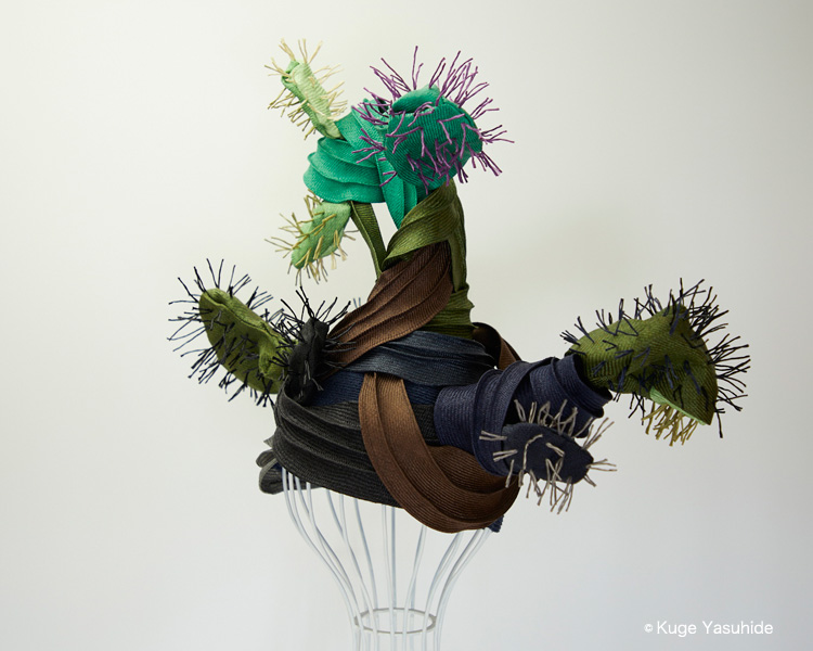 帽子展では、メキシコの風景や色彩、サボテンを思い浮かべながら制作した帽子が並びました。その中の3点を観てください。