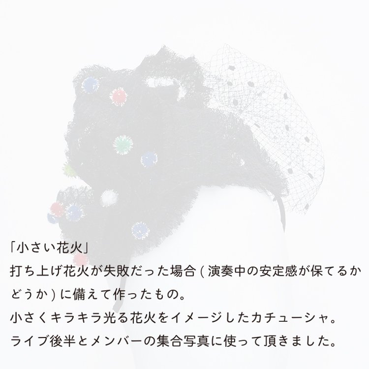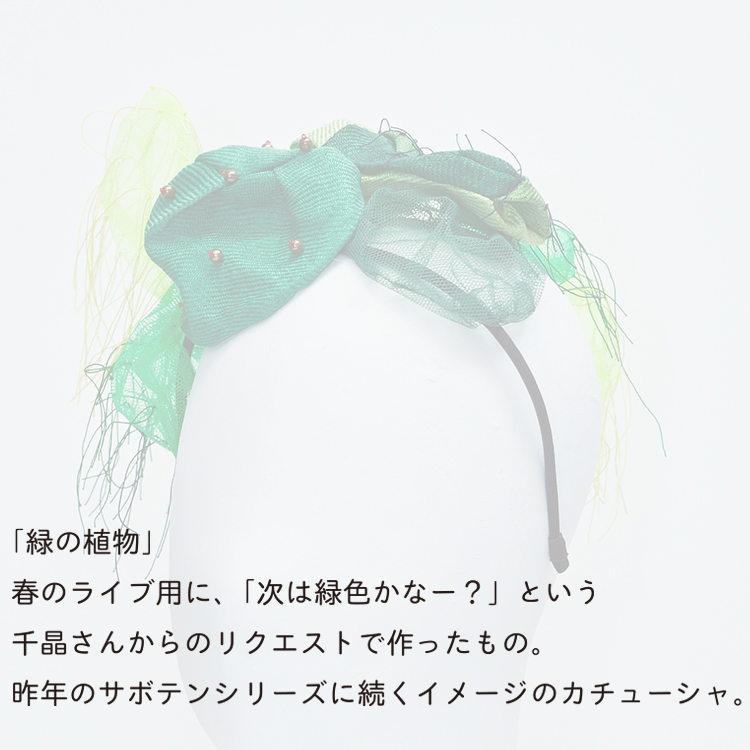 ライブでは、衣装に合わせ(和装もあり)しばしば私が制作したヘッドピースをつけてくださっています。